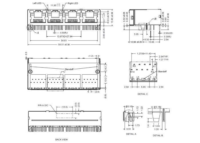 この RTC-1QDBAM1A は、高密度 4 ポート (1x4) RJ45 モジュラージャックで、10/100/1000Base-T マグネティクスを内蔵しています。高性能ネットワークアプリケーション向けに設計されており、優れた EMI シールド、統合されたステータス LED、および PCB スペースを節約するコンパクトなフットプリントを組み合わせています。スイッチ、ルーター、および複数の高速イーサネットポートを必要とする産業用コンピューティング機器に最適です。