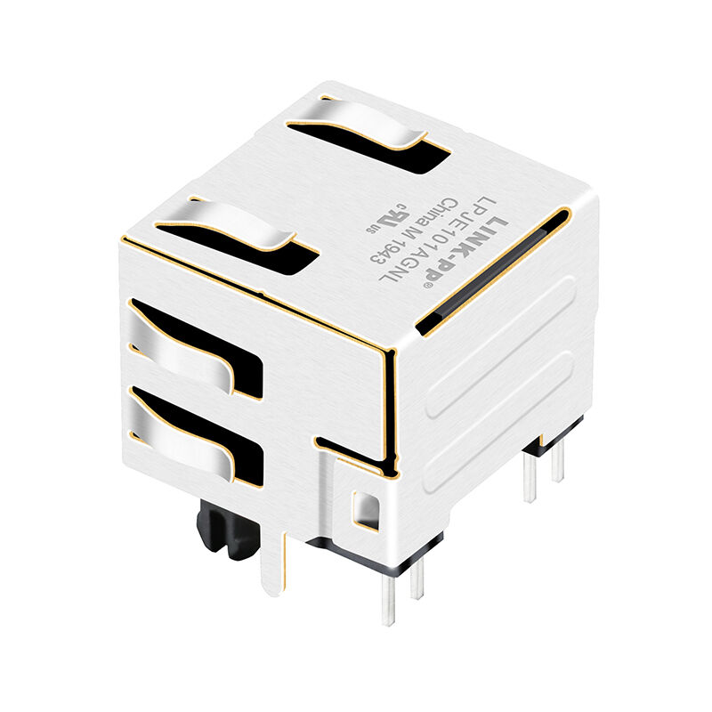 このコネクタには直角 (水平) 透孔設計,パネルの指で組み込まれたEMIシールドそして2つのLED表示ネットワーク接続とアクティビティの状態について