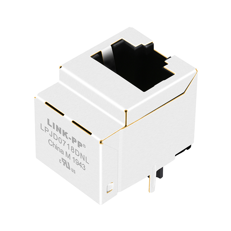 The LPJD0718DNL is a single-port 10/100/1000 Base-T (Gigabit Ethernet) RJ45 magnetic connector designed for vertical PCB mounting. It integrates a high-performance transformer module within the jack housing and supports non-PoE applications.